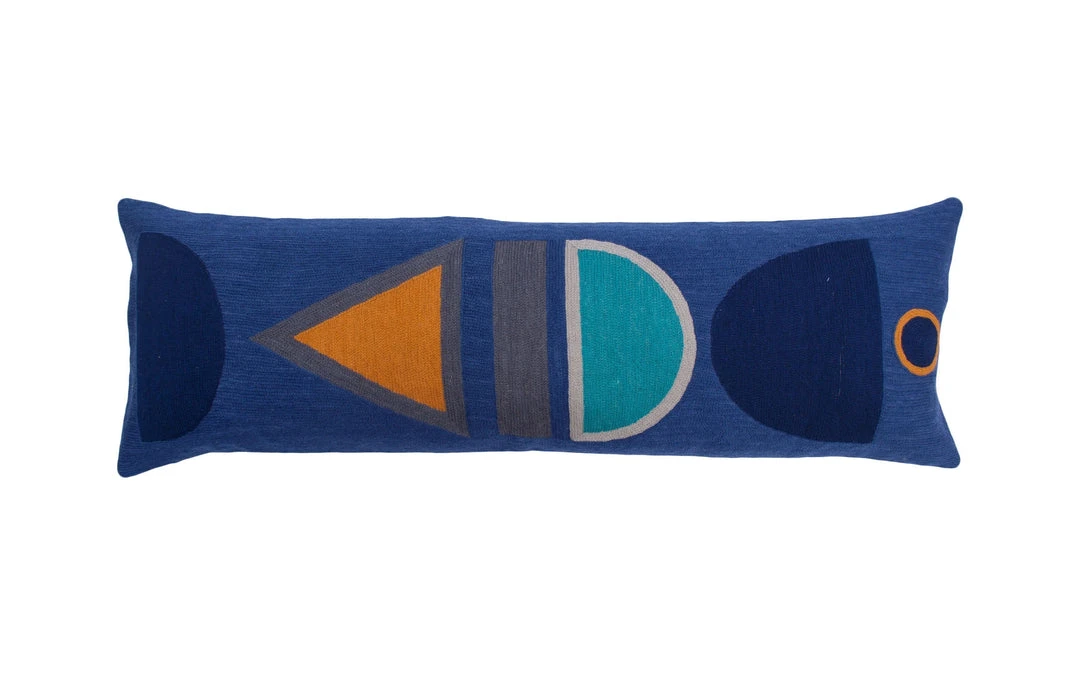 The Dana XL Lumbar Pillows are extra long to style on your couch, bed, or on a bench. The playful colors and geometric design will add a lively touch of color and movement to any space in your home. Each cover has been ethically hand woven by artisans in Rajasthan, India, using a traditional weaving technique which is native to this region. Each piece may vary slightly due to the nature of handcrafted goods.
