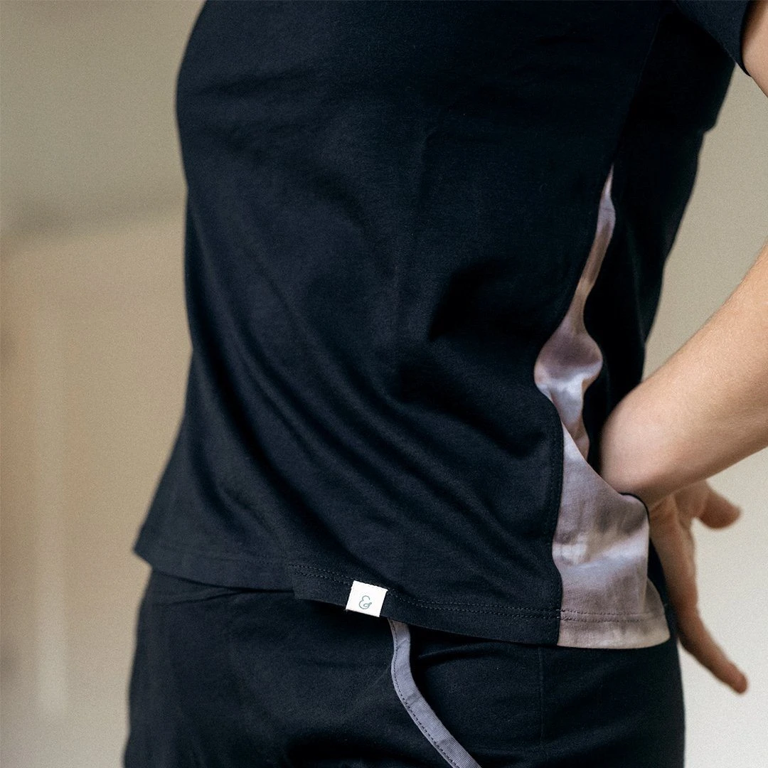 The organic cotton cool night tee gives an easy sophistication to your look that wears well all day. The hand made tie-dye detail on the sides makes this ultra-stylish top anything but ordinary. Make your day simpler with a comfortable top that you can wear from morning to market to yoga to anywhere you need to be.