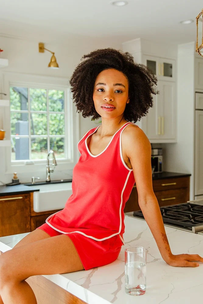 Leena and Lu’s softest pajama set, The Pima Tank Short Set features a scoop neck top, and their best sellers Pima Pajama Shorts. This super-soft, organic pajama set adds just the right elevated touch to your sleepwear.