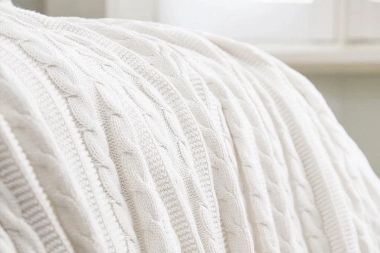 This irresistibly soft cable knit throw is a warm, breathable companion for all seasons.