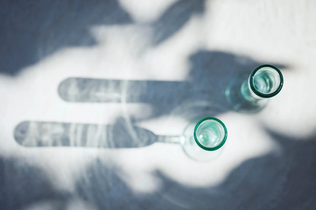 These champagne flutes have a funky silhouette and wavy detailing to keep the party going. Due to the handmade quality no two glasses are the same, can vary in detailing, color, and size up to 2″.