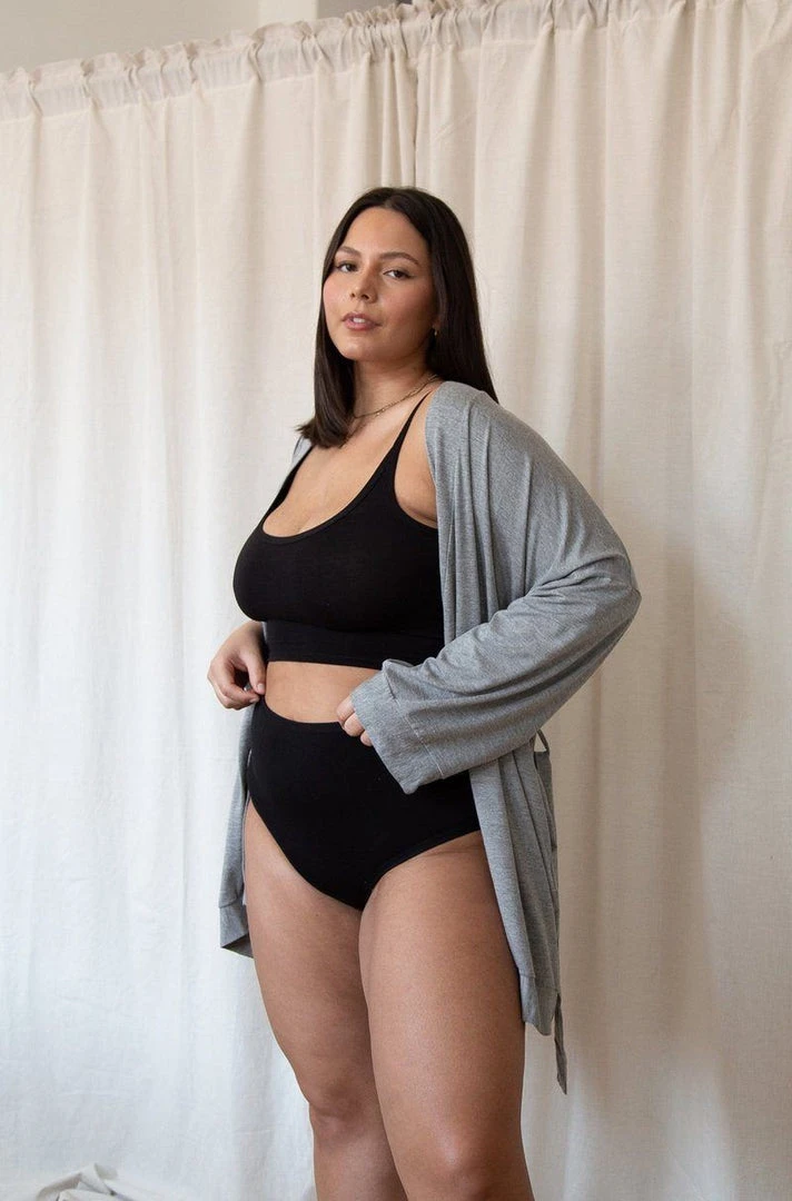 The Oli Robe is the perfect piece to throw on while at home without looking like you’re in the middle of spring cleaning. Hitting mid thigh with raglan loose sleeves, side pockets and a waistband for chic comfort.
