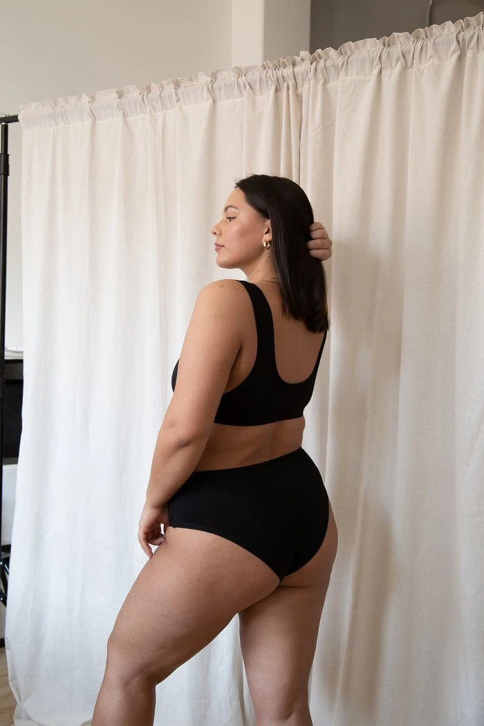 This bra is the ultimate in comfort and style without any fuss. Soft scoop front and back along with a low under arm allow freedom in movement. The double layer front offers extra coverage and support without adding any restrictions. Celebrate your natural shape by simply pulling over the Mayes Bra and taking on your day. Worn here with the Moana Bikini Underwear.