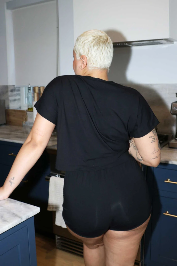 The Silas Bamboo Tee is an easy, comfy, boxy long crop style tee offering a loose shape with minimal detailing. The Silas Tee is the staple item your sustainable wardrobe needs. It can be dressed up with jeans for a casual look or worn around the house with the Mila Bamboo Shorts.