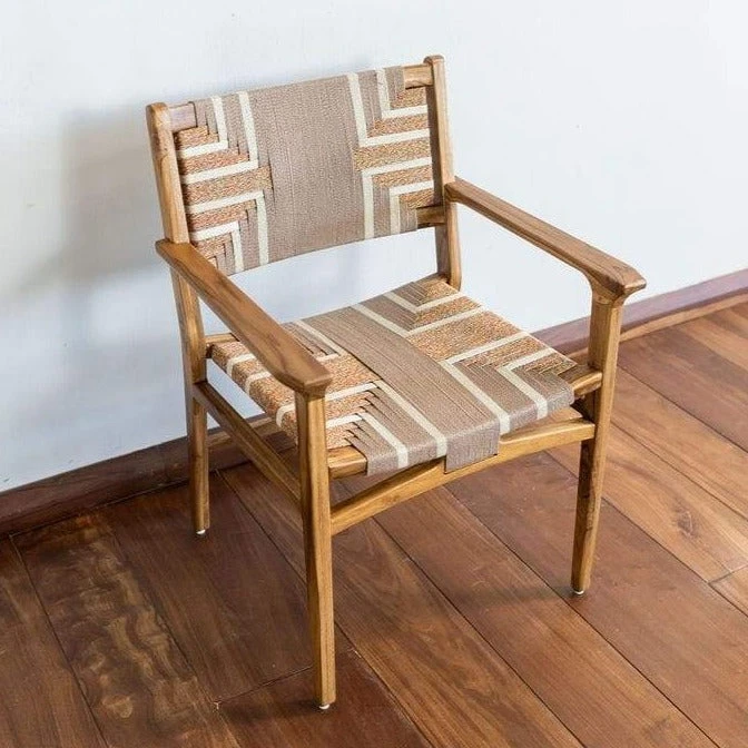 The Chontales Arm Chair is handcrafted by artisans in Nicaragua from sustainably sourced wood. Featuring a neutral Reynaga pattern. Modern, yet timeless, this chair will make a statement in any home.