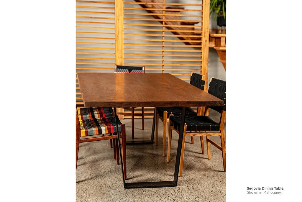 This stunning live edge slab table is cut from a tropical hardwood of exceptional beauty and quality. It is sustainably built with hand selected, locally sourced wood. This table will add warmth to any home.