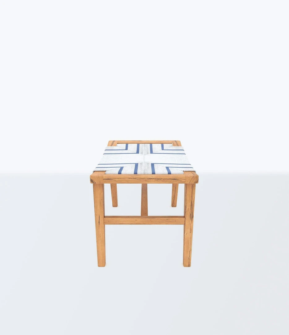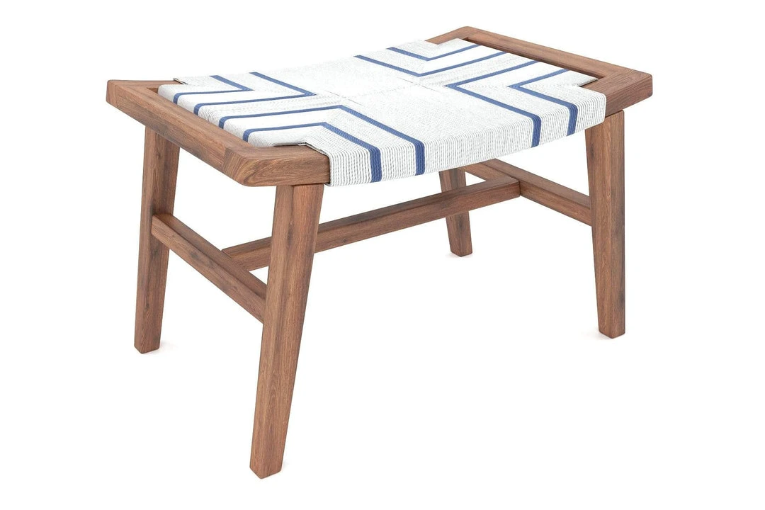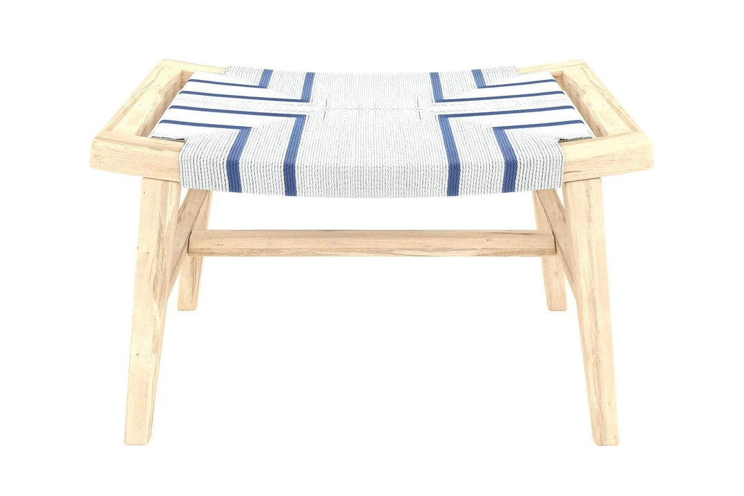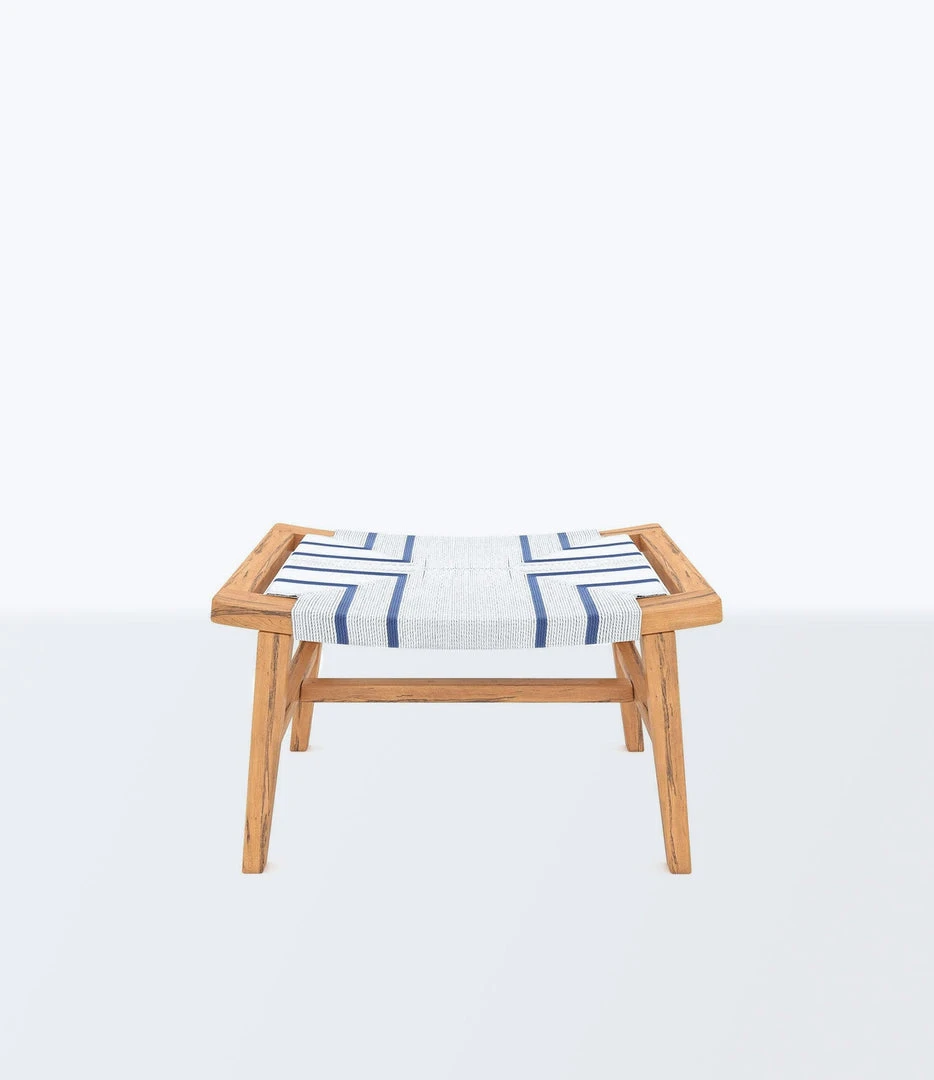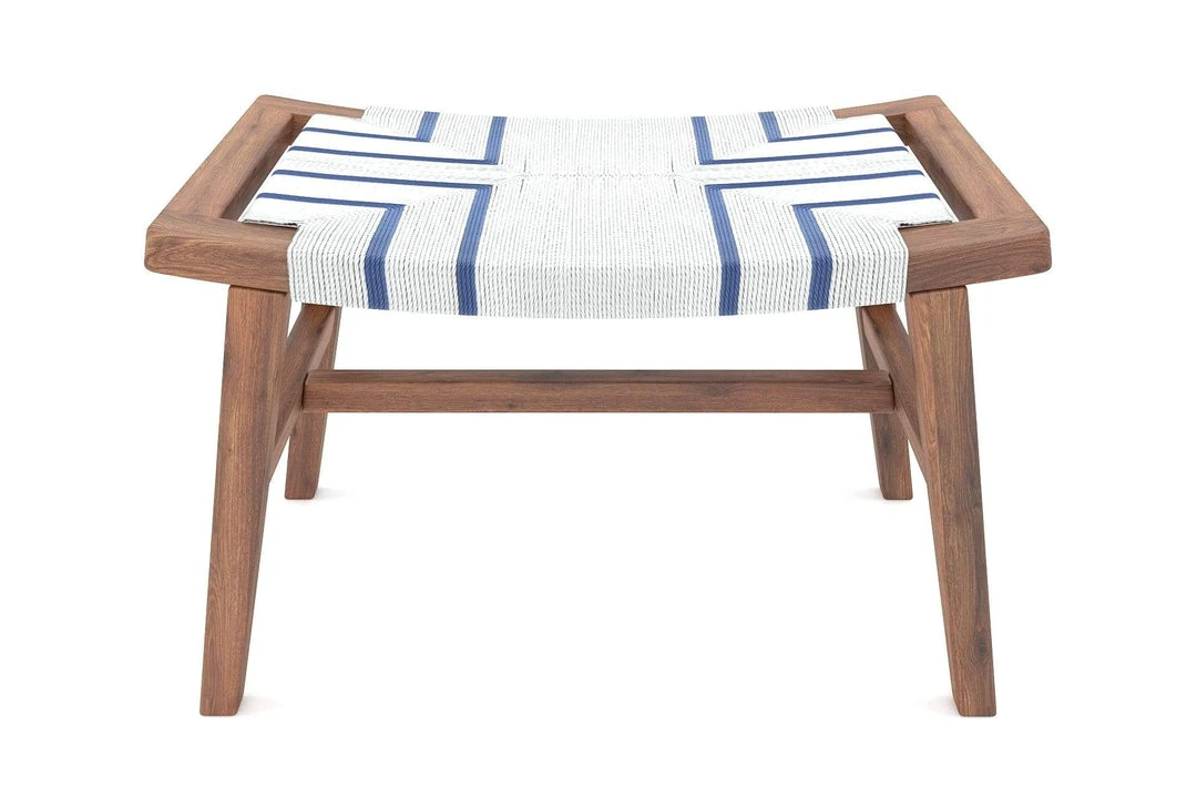 Handcrafted from solid sustainably harvested tropical hardwood, the Masaya Ottoman features the handwoven Ruben pattern. Available in Rosita Walnut, Royal Mahogany, Teak, and Burnt Teak. Pair with the matching lounge chair to complete the look.