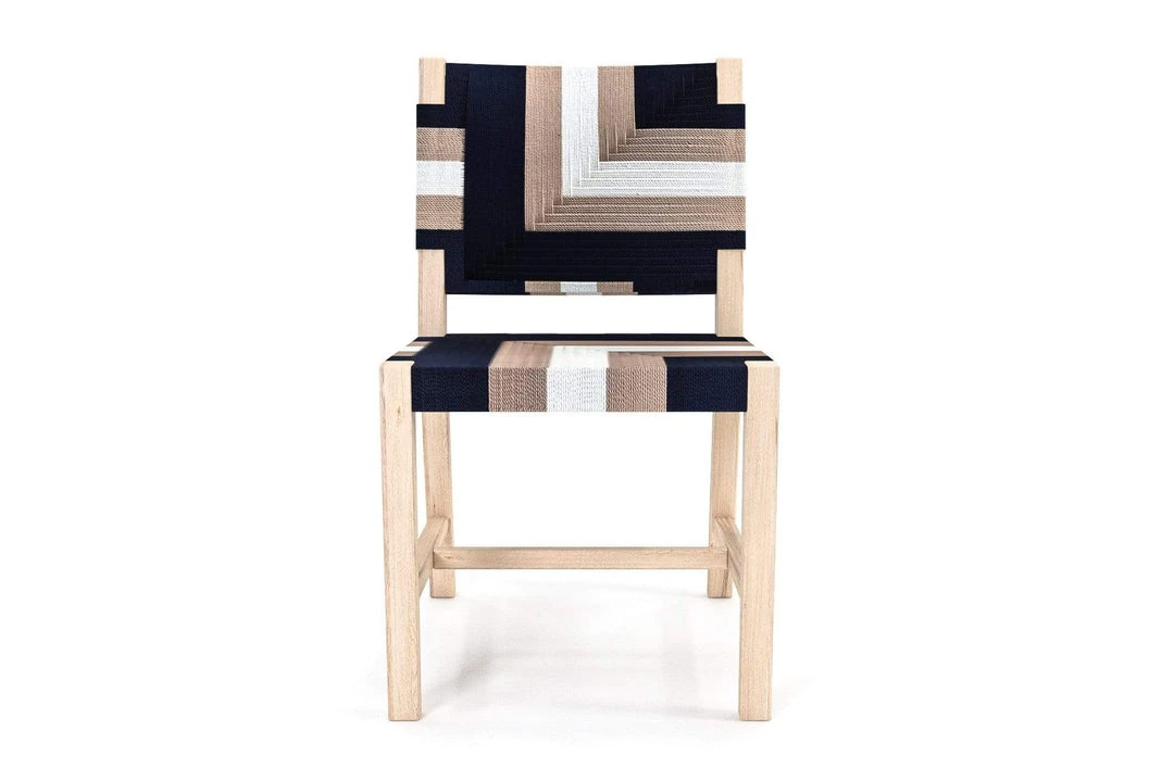 Simple yet elegant, the Monimbo Dining Chair in the Nordica Pattern has a solid wood frame and hand woven seat and backrest, adding color and handmade craftsmanship to any dining space.