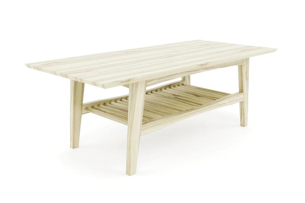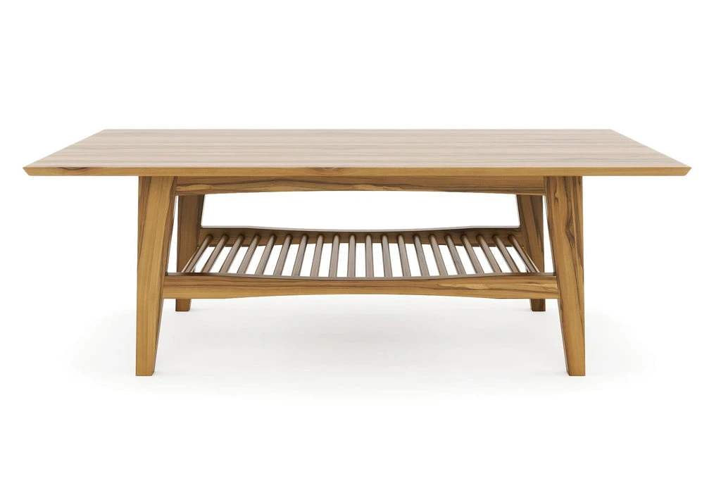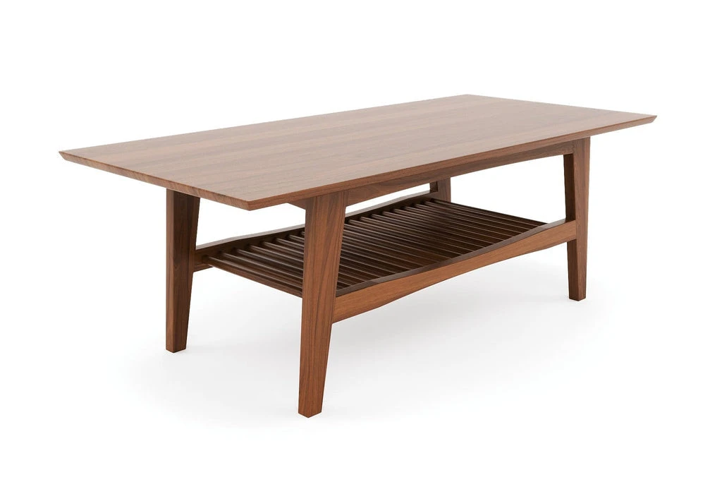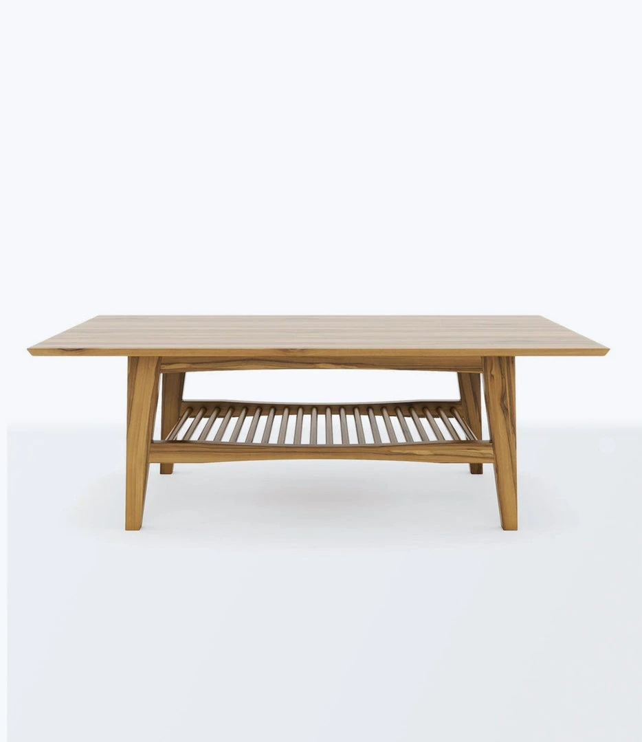 Beautiful handmade coffee table built by artisan craftsman. The decorative and practical lower shelf of this stylish piece gives this living room piece a unique look of authenticity, style, and heritage.