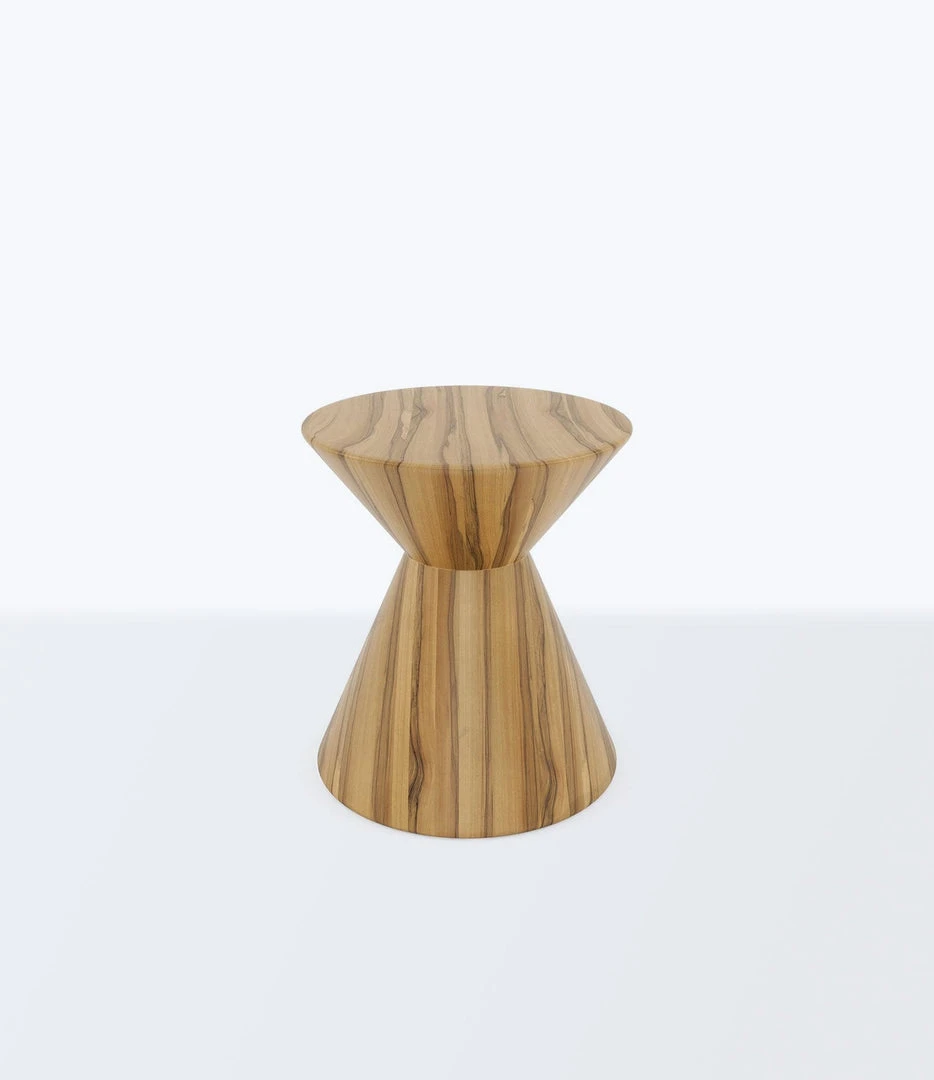A cultural piece of wooden furniture inspired by the ”trompo” game. Handcrafted from solid, laminated, sustainably sourced Teak. The character and grain of wood naturally vary, making each piece completely unique.
