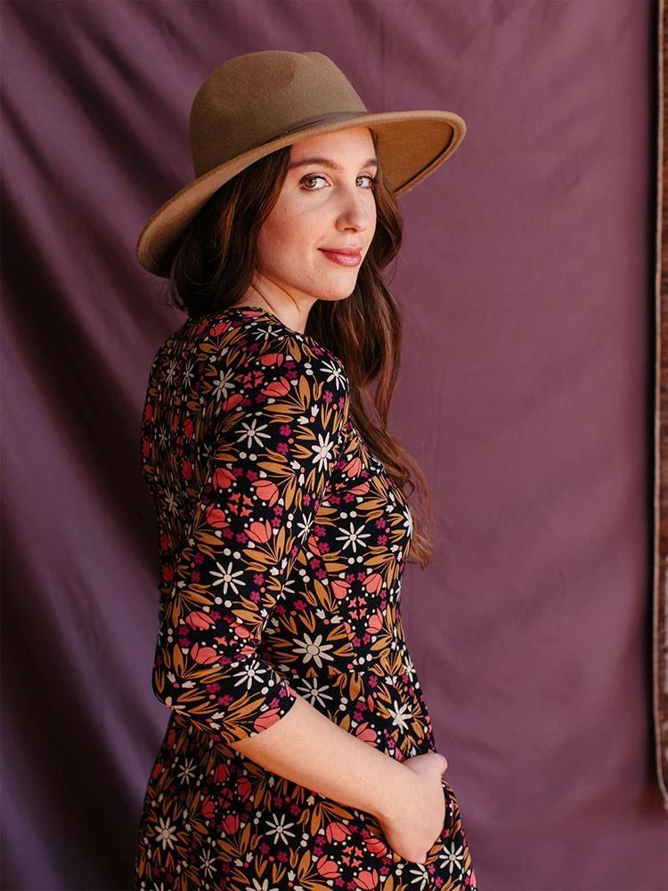 Embrace peak boho chic attitude in this stunning organic cotton jersey maxi dress with hidden pockets! Long sleeves and a flattering waist accentuate the modern fit.