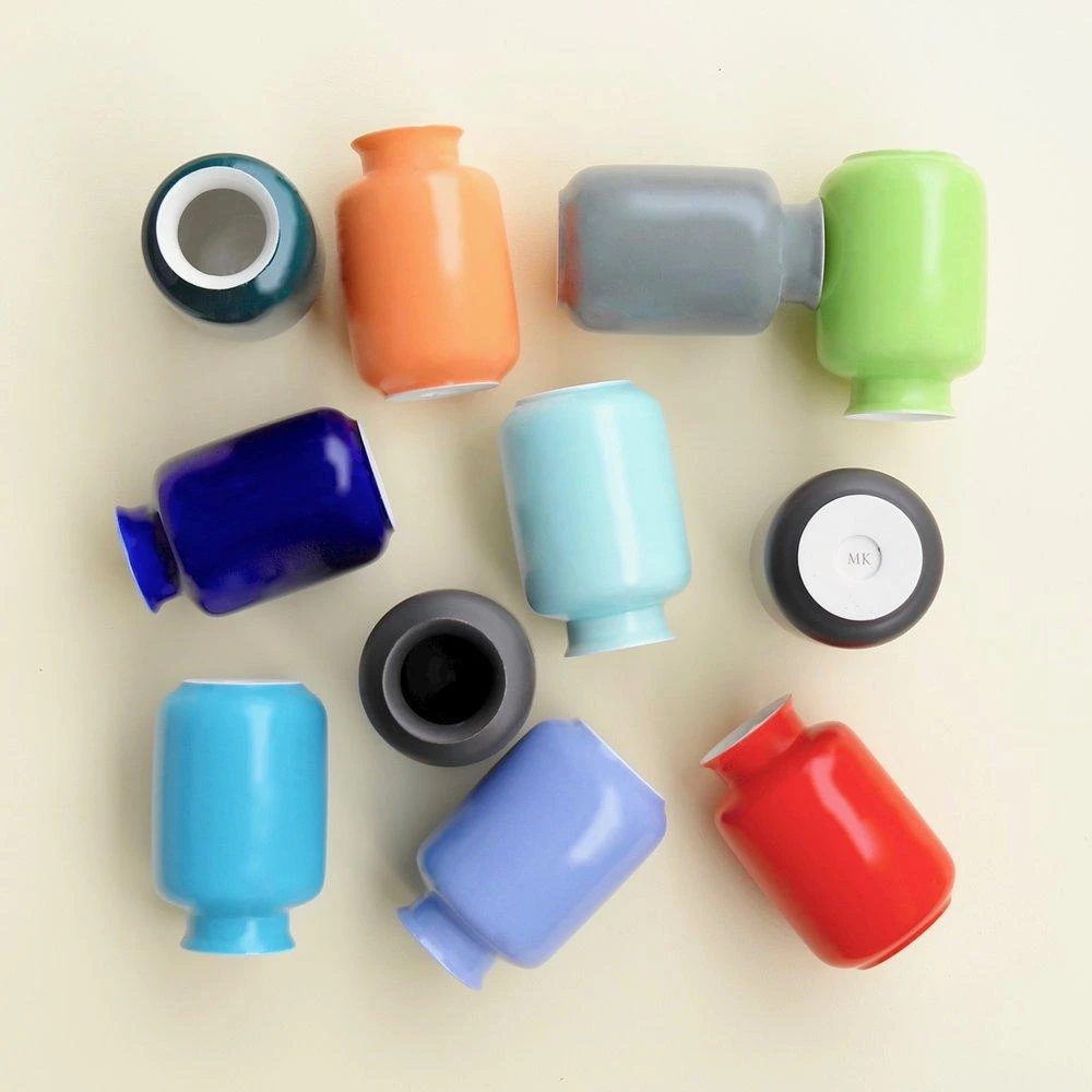A sweetly curved mini vase to add a pop of texture and color to your desk, windowsills, and countertops. Bright and glossy to light up any area on its own, or style with multiple colors and vase styles to create a dynamic display.
