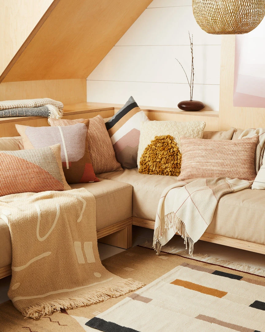 The texture of the Sheila Pillow was inspired by the ruins of Huaca Pucllana and was named after Sheila Hicks. An easy way to incorporate texture into any room. The salmon color is 100% natural, derived from plants and flowers harvested in Peru.