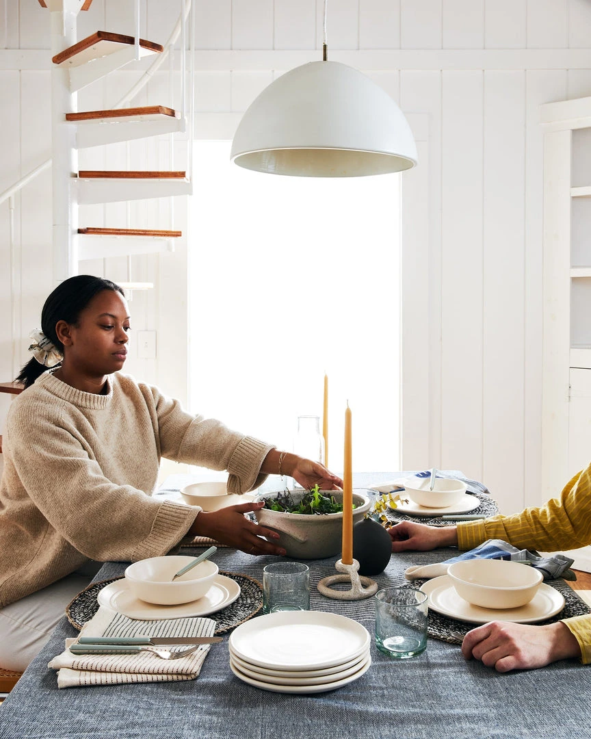 The Stack Tablecloth is a versatile, neutral backdrop to mix and match with any table setting and decor style. Inspired by the play between shadow and light, this tablecloth reminds us of warm sunlight casting shadows through windows in the early evening. Handwoven by a family run workshop in Oaxaca, Mexico. Due to the nature of handcrafted goods, slight variations are embraced.