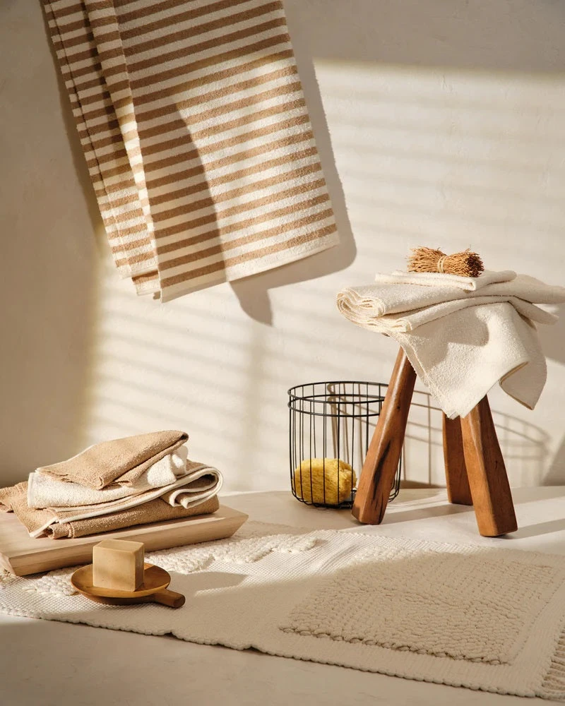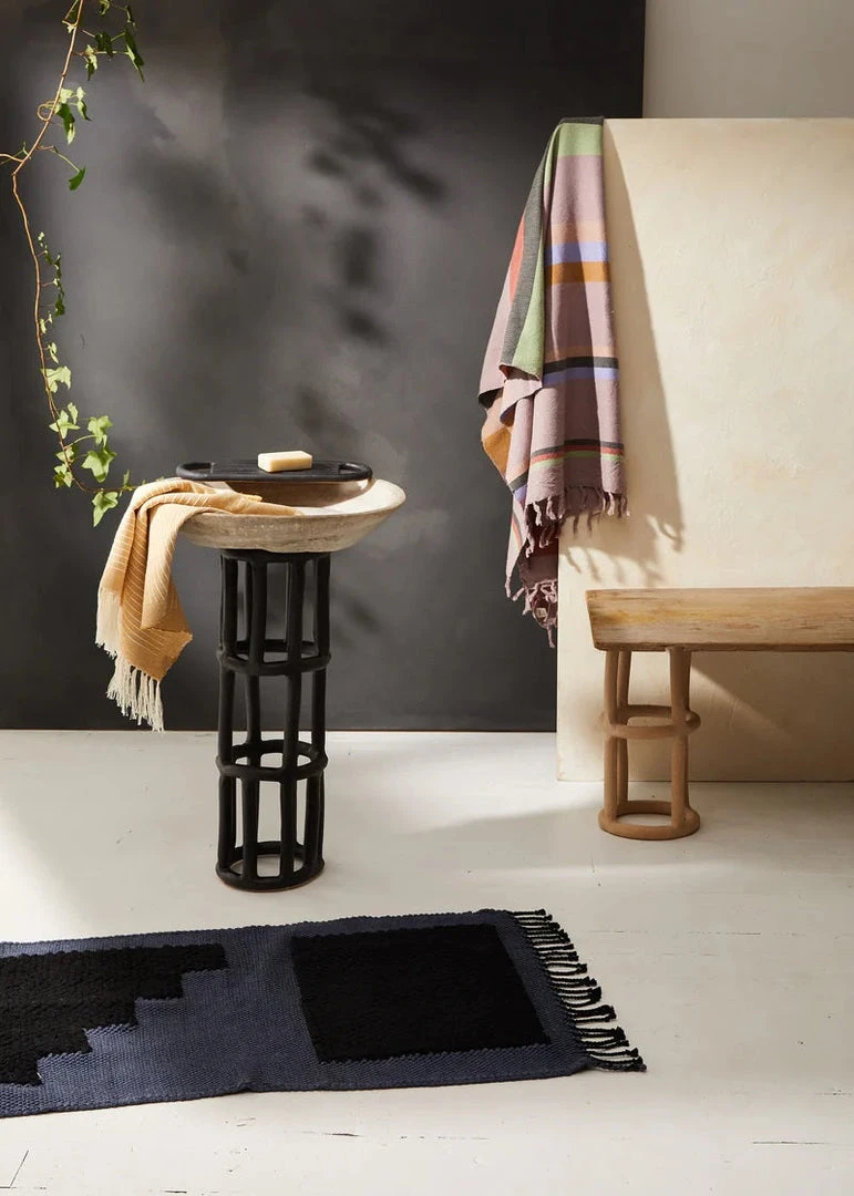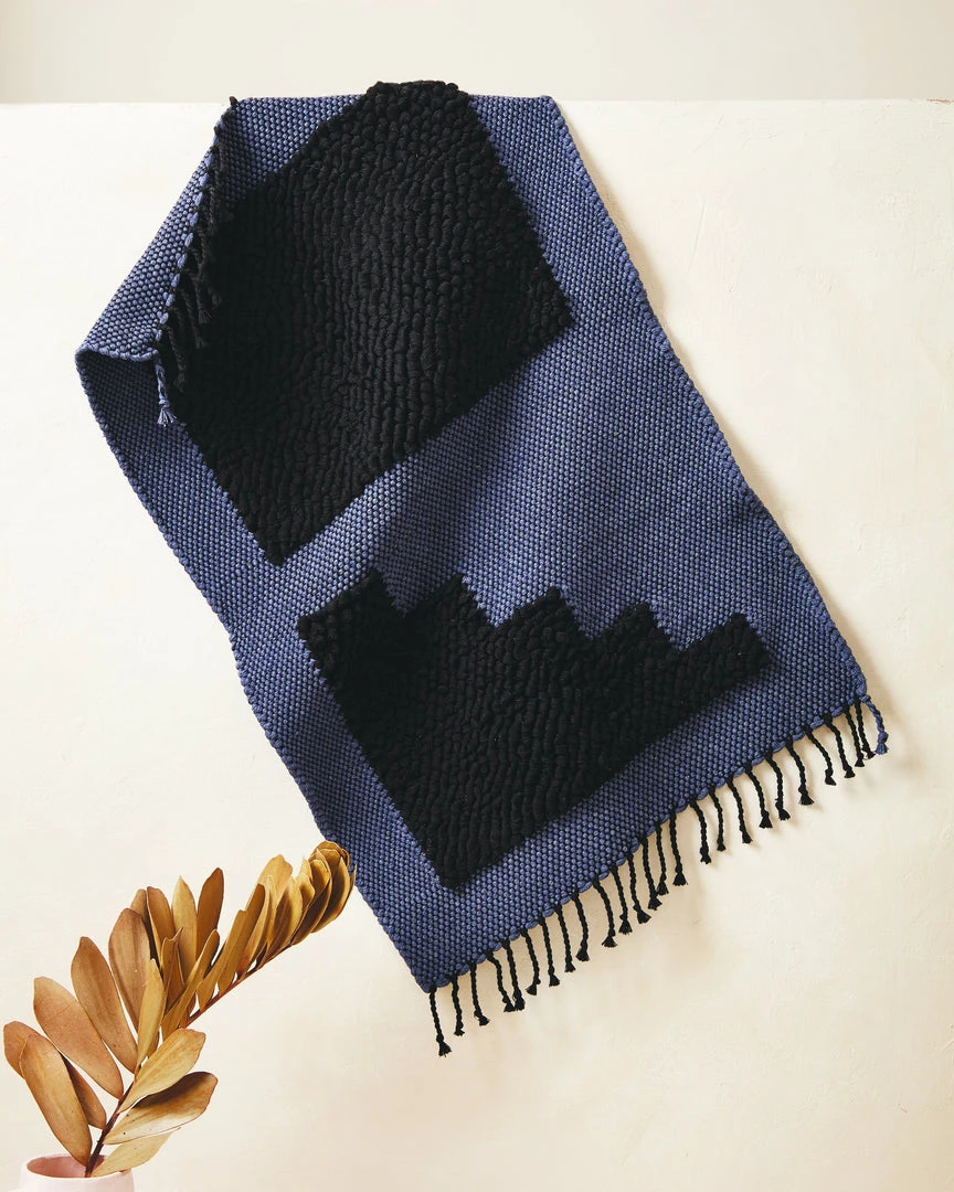 The Steps Mat in midnight is inspired by architect Luis Barragan. The handwoven cotton mats have a looped weave, creating a cozy texture for stepping and standing – perfect for use as a bath mat or in front of the kitchen sink.