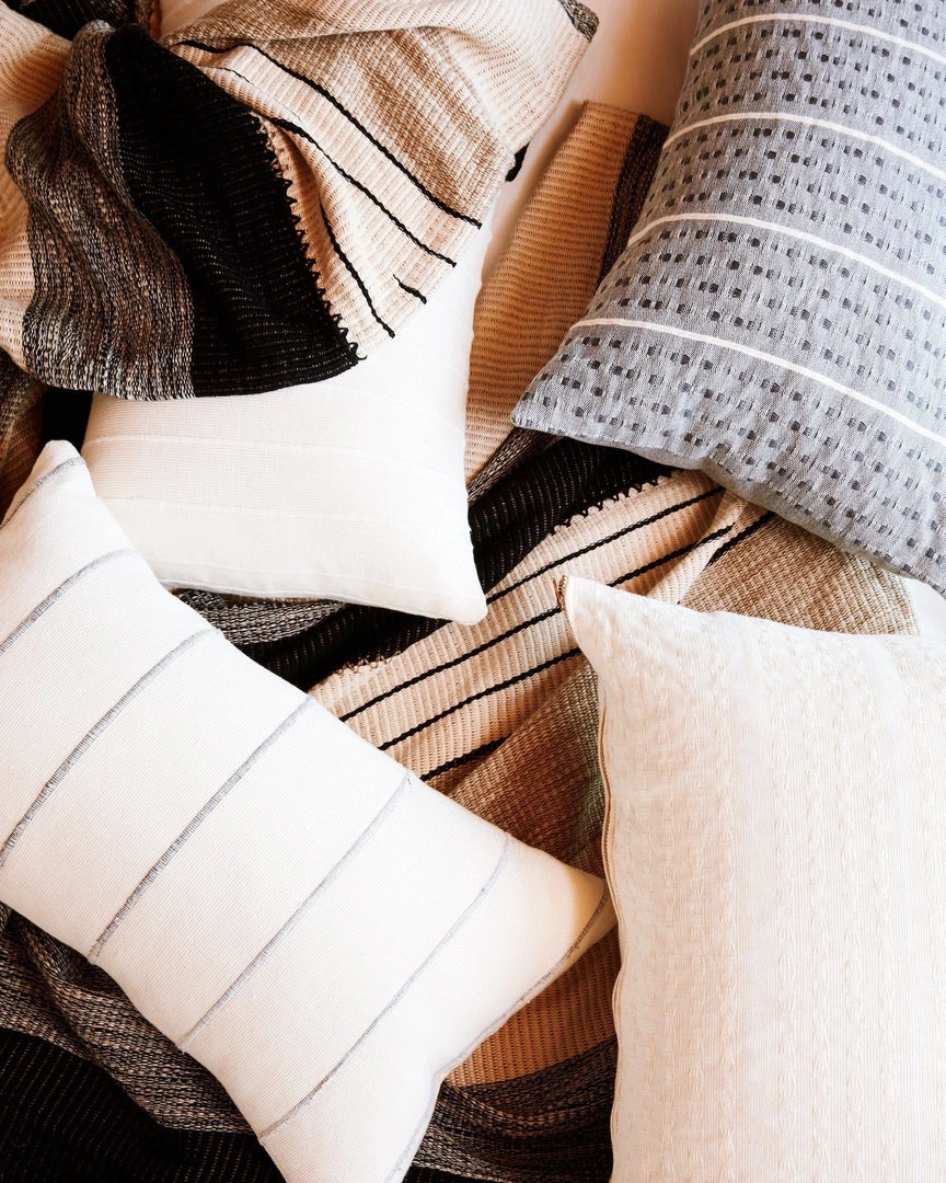 The Texture Pillow in Cream was handwoven by a family run co-op in Chiapas, Mexico. Made of 100% cotton, with a cotton backing.