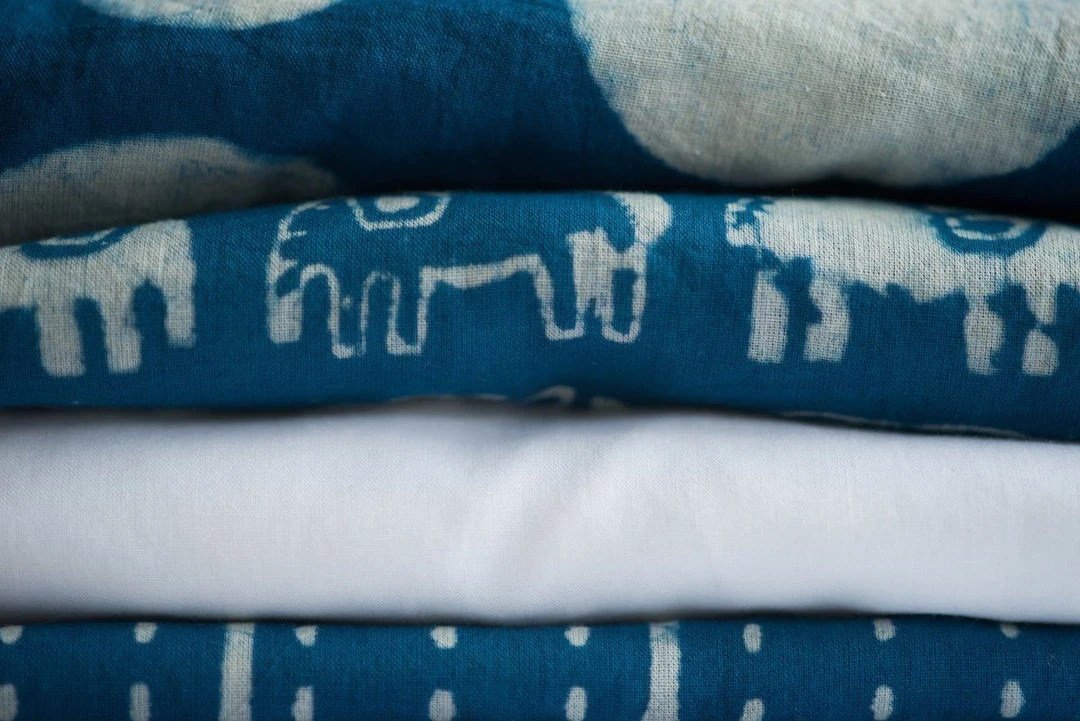 learning, playing, eating, napping and whatever else you can squeeze into the day. The fabric in the Dabu collection is made with hand carved wooden blocks dipped into a mud paste to create a resist print. The fabric is then dipped into an indigo bath. This process is traditional to Indian textiles.