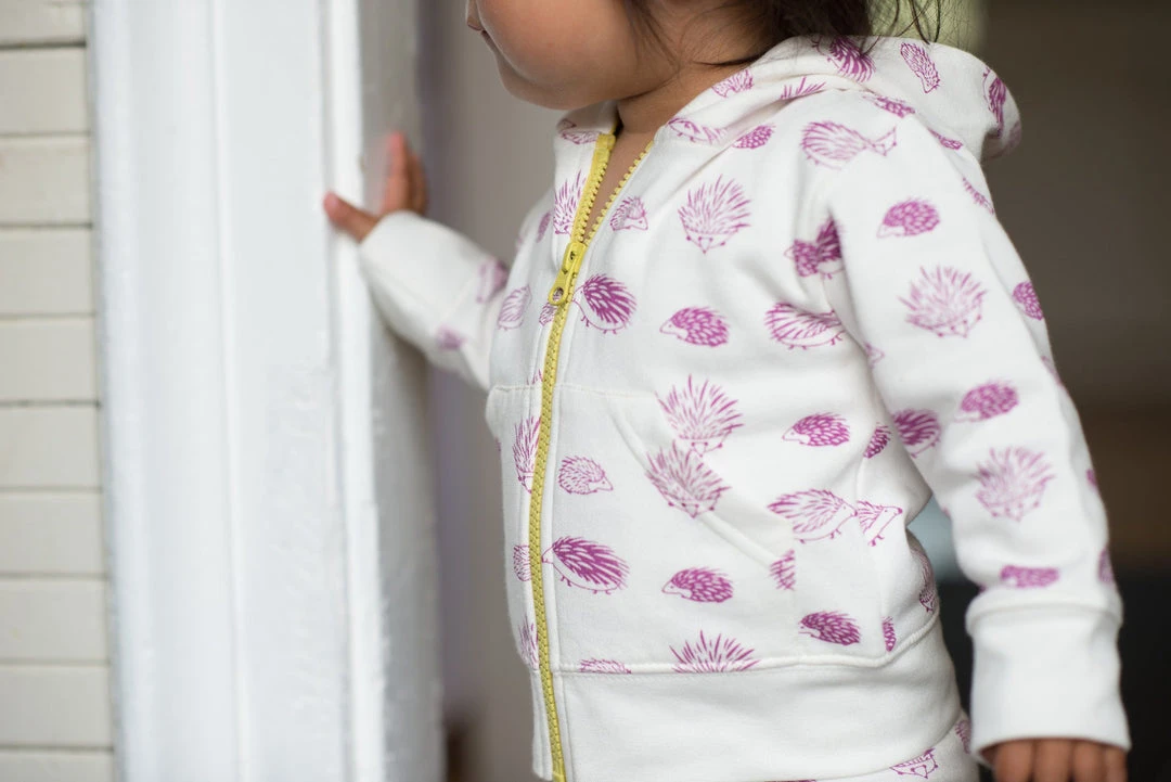 Clean and simple design with a pop of color, this hoodie is gender-neutral and whimsical in style. The hoodie has two pockets in the front and a contrasting zipper and hood lining- making it fun and practical.