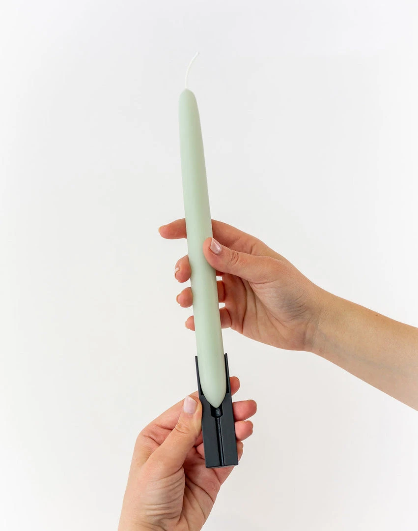 These sleek, minimal candlestick holders elevate the look of your taper candles, adding a modern touch to your tablescape, mantle, or wherever else you style them. This handcrafted set is designed to hold round-bottom taper candles upright. Complete the look with The Mo&Co Home Beeswax Taper Candles.