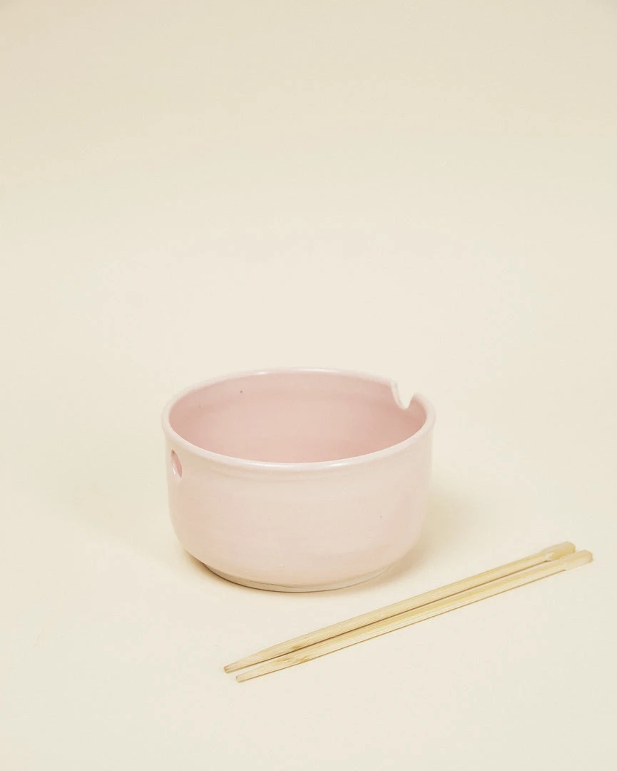 A medium sized ramen bowl with holes to hold your chopsticks. Each bowl is handcrafted and hand glazed with care in Houston, TX.