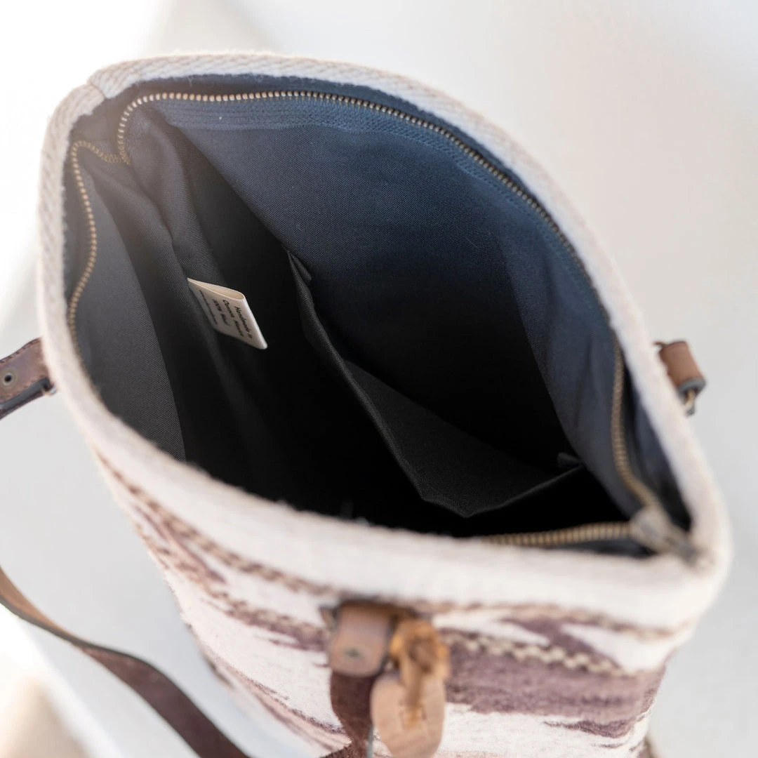 The Tierra pattern features a traditional Zapotec diamond and arrow design in shades of eggplant, rich chocolate brown, dusty mauve, and cream. This earthy color palette will easily transition from season to season, perfect for a tote lovingly handmade to last.