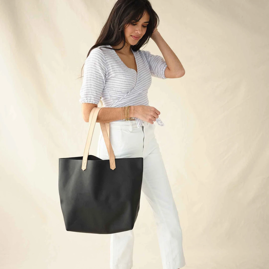 Minimalist and timeless on the outside while being maximalist on the inside. Whether you’re flying west, booking it to class, or hauling all your kid’s stuff around, Lori is your ultimate carryall. With its soft and sturdy leather, it continues to look better with wear. The Lori Tote is handmade in an ethical factory Nisolo owns and operates in Peru.