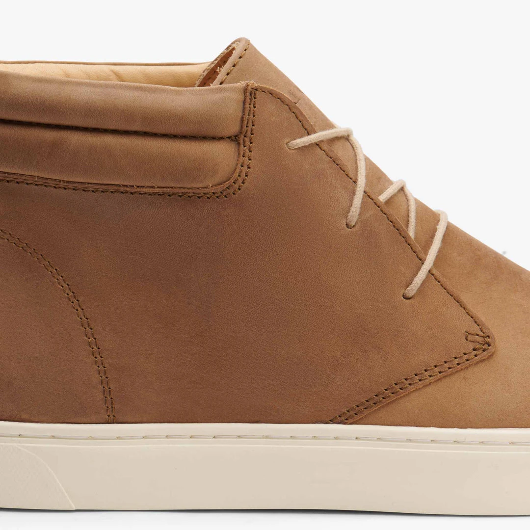 The Cortez Mid Top Sneaker combines a classic chukka boot look with the comfort and versatility you expect from a sneaker. It features a Vibram sole, soft leather insole and lining, smooth leather upper, and comes equipped with two types of laces, both cotton and waxed cotton, to fit your style. Handmade in an ethical factory in León, Mexico.