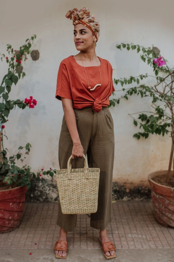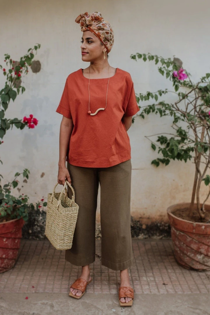The Lora Drop Tee has a wide, boxy fit making it casual and super versatile. Featuring subtle touches like a scooped neckline and rolled-back cuffs with a regular length and earthy tone.