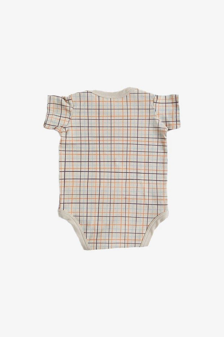 Super soft organic short sleeve onesie printed with a Grid print. Envelope neckline and a two-snap closure for easy baby changing.
