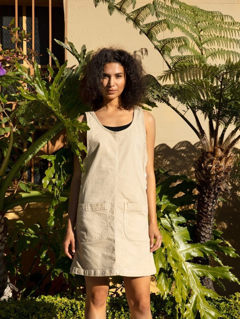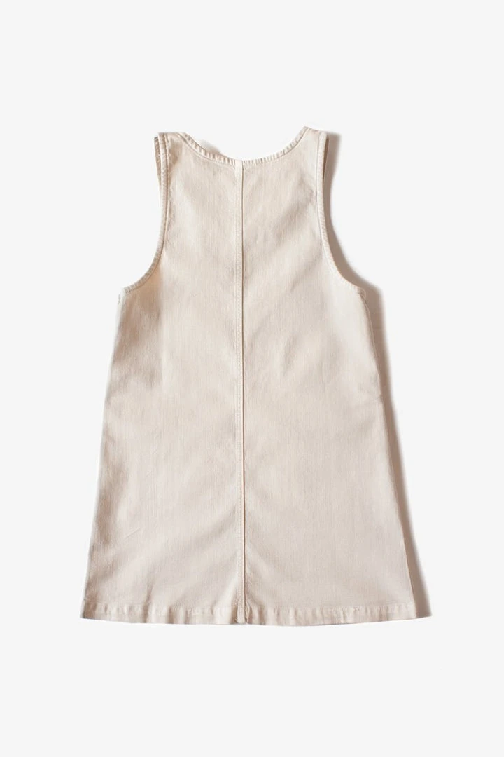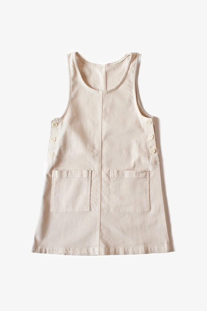 The Caroline denim jumper dress is a seasonless wardrobe staple that can easily be layered with your favorite top. Featuring front patch pockets and buttons down the side, with a hint of stretch for all-day comfort.