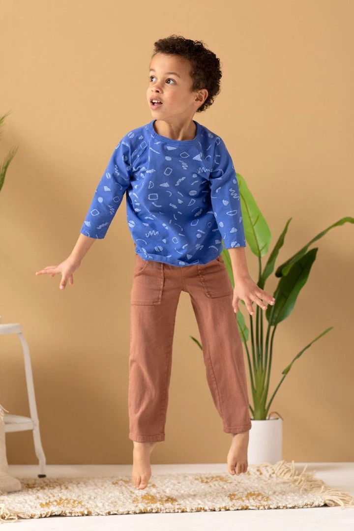 This super soft organic long sleeve raglan t-shirt is printed with North of West’s fun Squiggles print.