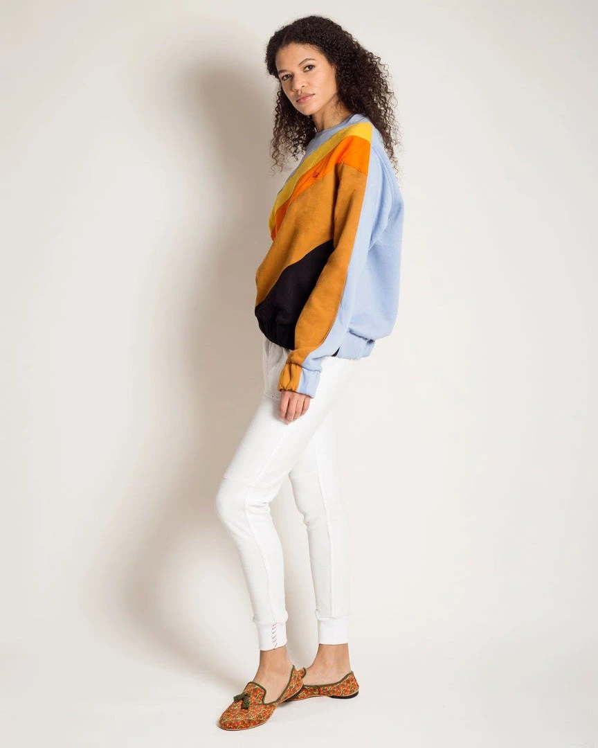Named ‘Parcham’, meaning banner or flag in Pashto/Persian, is a sweatshirt paying homage to the often misplaced memories of Retro Pakistan and a celebration of the creators multicultural identity. All inside seams are meticulously reinforced and double bound with a contrast cotton tape to ensure durability. The seams are hand stitched to accentuate constructions details.