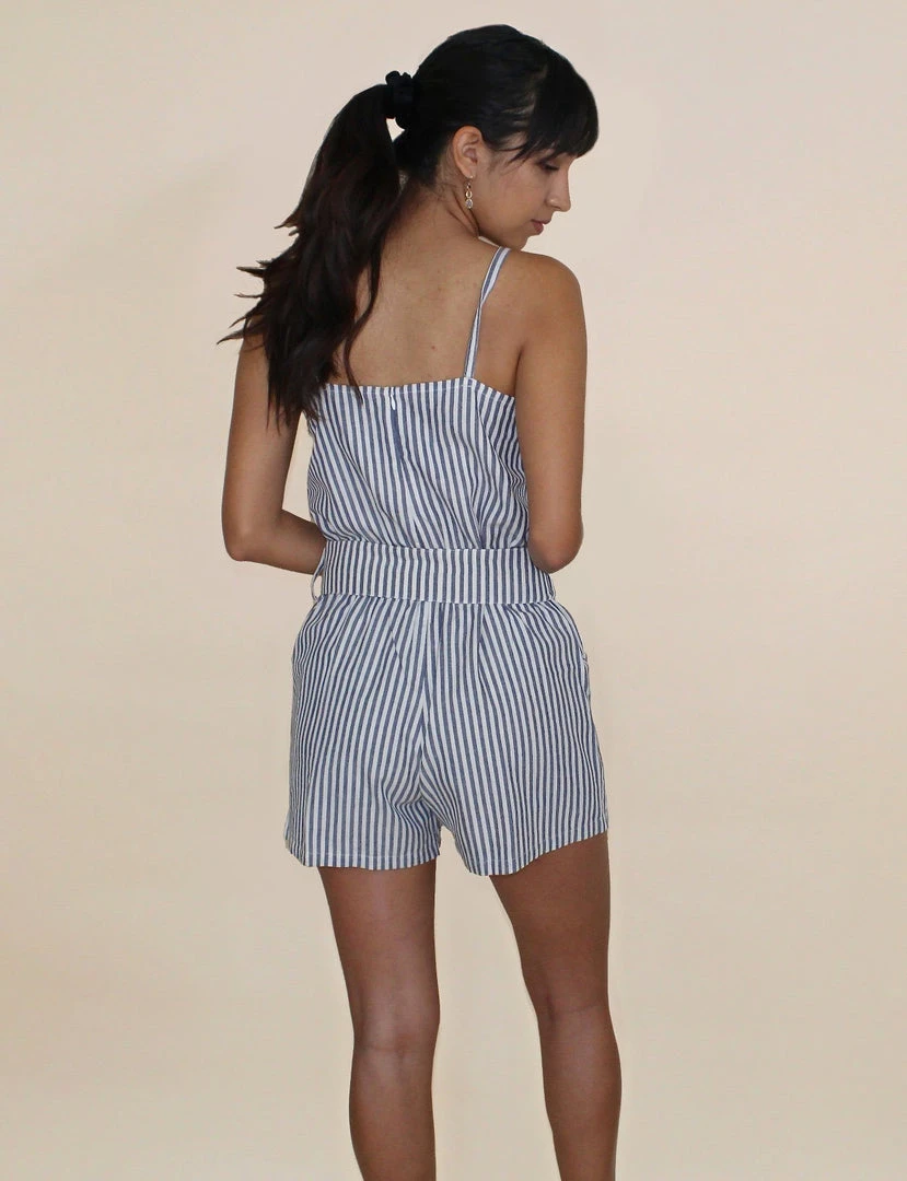 This jumpsuit features adjustable tie straps (no plastics), a zipper back closure and elastic at the waist for a comfortable and secure fit. Plus for adding styling there is a removable fabric belt with button closure and deep front pockets. Your purchase helps provide a secure job with fair wages and a positive working environment for artisans in India and the United States.