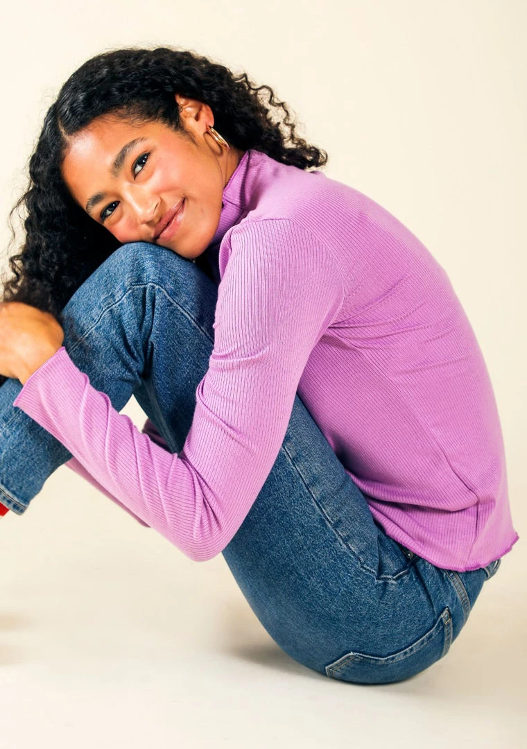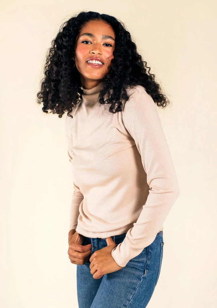 The Norma Ribbed Turtleneck is cozy and will quickly become your go to top on cooler days. Made from Modal, a super soft, earth friendly material made from beech trees. The fabric has a natural stretch, giving you a relaxed fit. We suggest you size down if you’d like a more fitted feel.