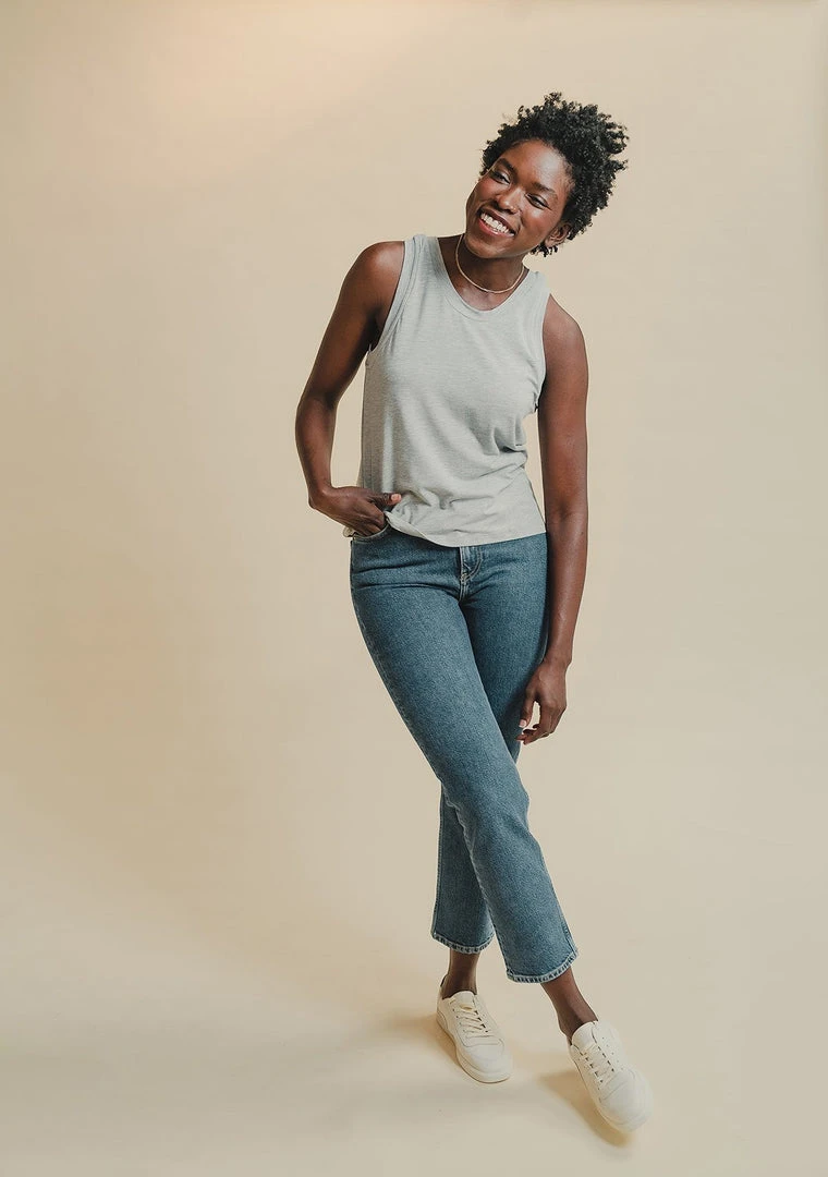 The Shirley Bamboo Tank has all the smooth moves. Made from Bamboo, this style is as soft as it gets and feels incredible on the skin. Plus, bamboo is ultra moisture-wicking and keeps your skin dry and comfortable all day long. The perfect top for layering under your favorite cardigan or jean jacket. A great transitional staple for summer to fall.