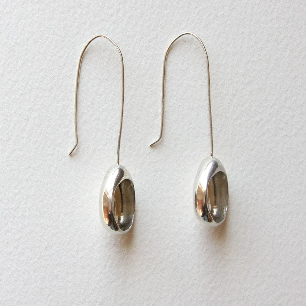 Hollow egg-shaped earrings that were hand carved in wax and cast in sterling silver with sterling silver ear wire.