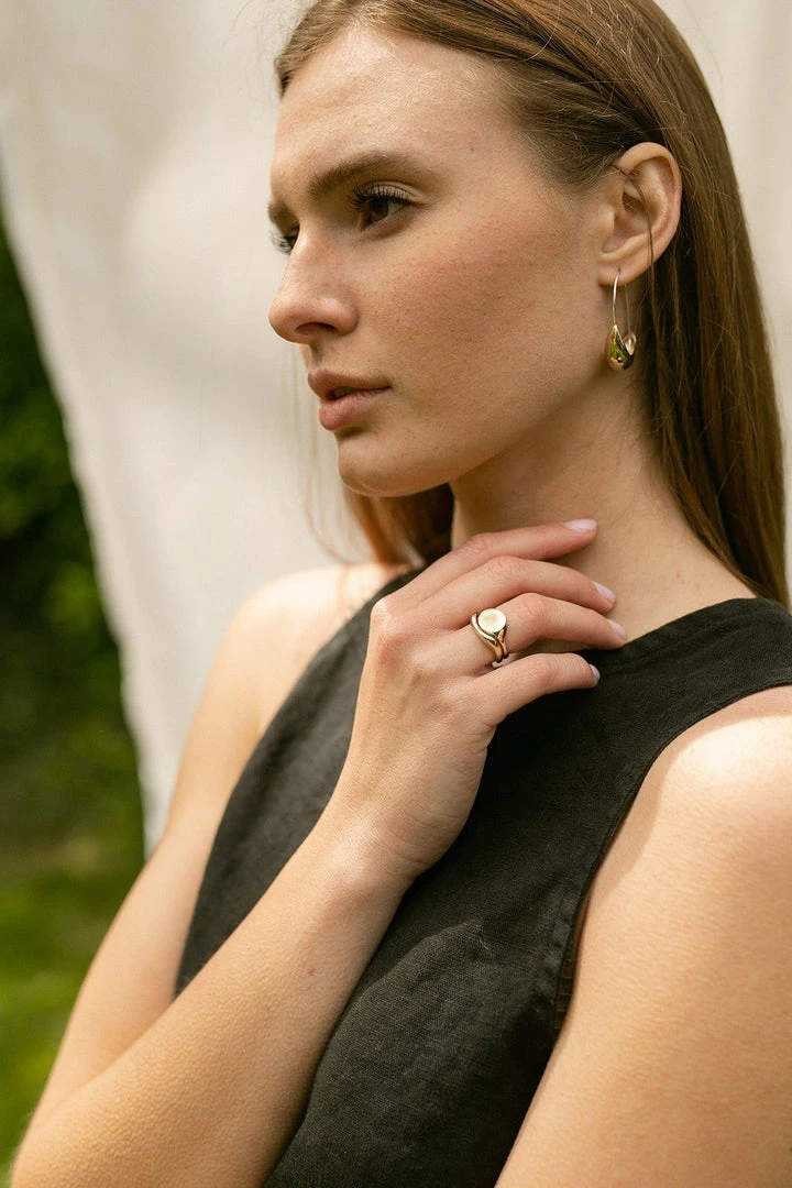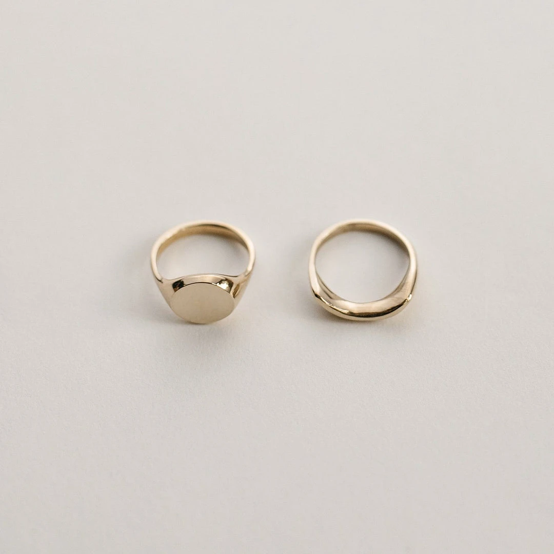 The organic shapes of this ring set are inspired by the sun rising over water. Made in small intentional batches.
