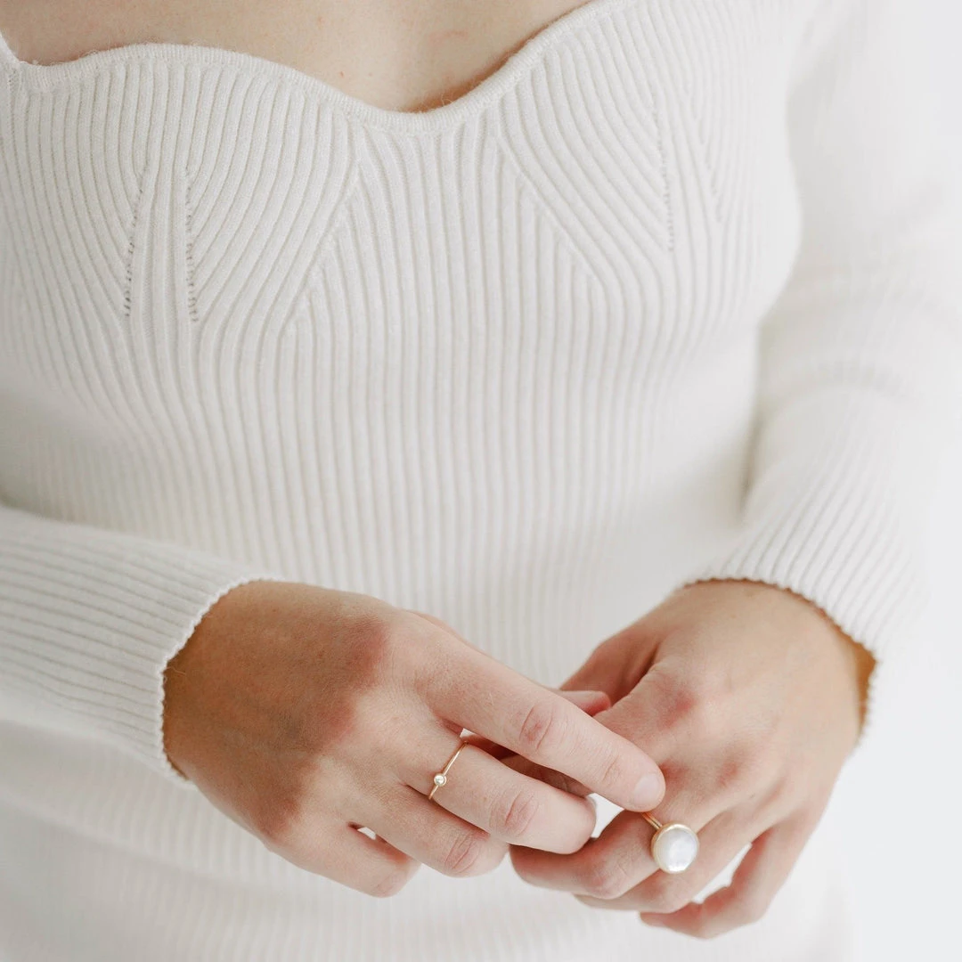 This dainty stackable gold ring with white topaz can be worn on its own or stacked with any of your favorite rings. Mix and match with the Be Light Recycled Gold Stacking Ring or the Deep Pearl Recycled Gold Ring.