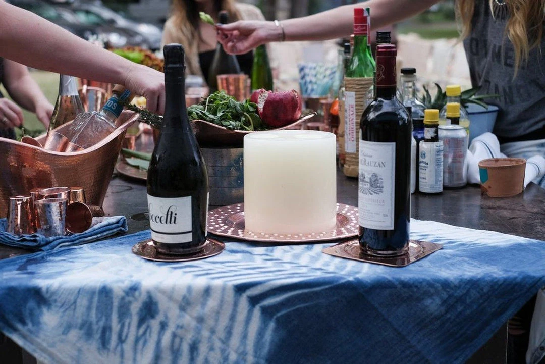 Napa Bottle Coasters, are perfect for any kind of bottle service, flower vase or candle base. This hand hammered beauty casts a warm intimate light, protects the table surface from drips and adds an elegant detail to a gourmet dining experience or even the most casual backyard hang.