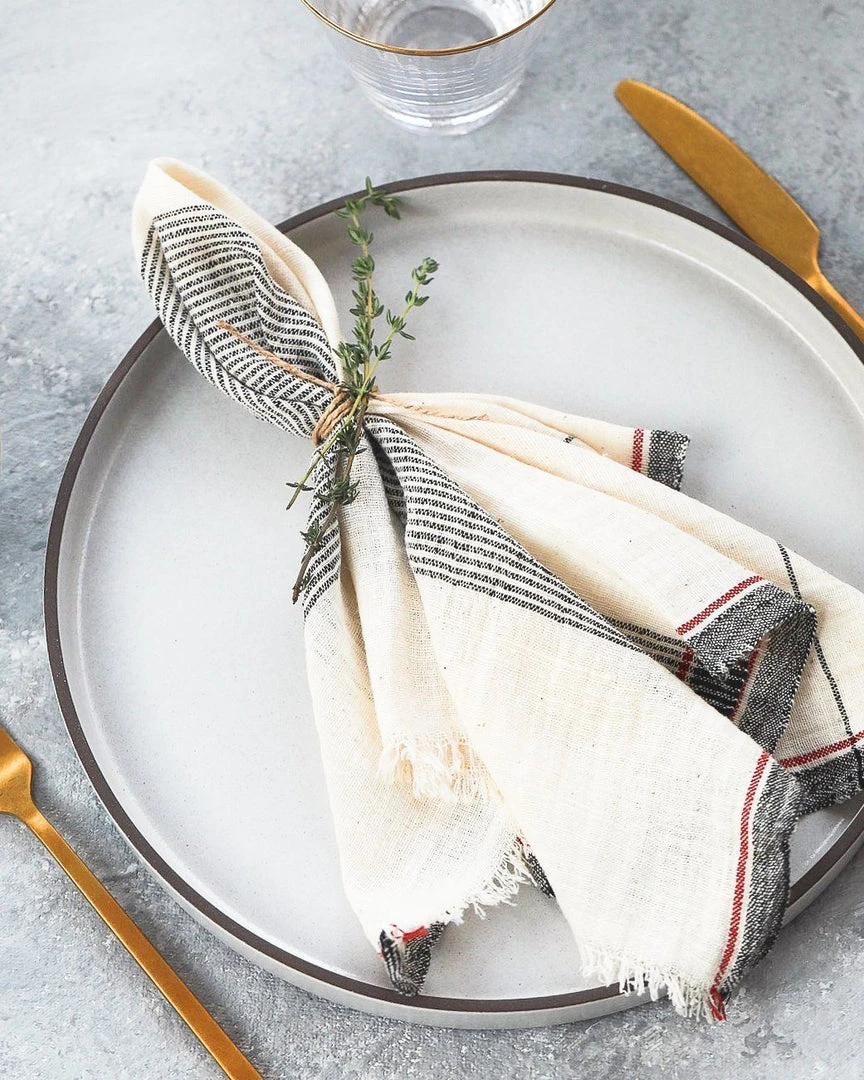 These napkins are minimalist, effortless, stylish and have an earthy feel to them. Their neutral palette will also compliment any of your dishes. These Kala Cotton napkins are handcrafted on hand-operated wooden looms, one of the oldest methods of textile production in India. The yarn is made from heirloom organic cotton grown in Gujarat, India. The crop is purely rain-fed so unlike large scale industrialized cotton production, it doesn’t require vast amounts of water to grow. Entirely a hand-crafted piece; slight irregularities are to be expected and celebrated