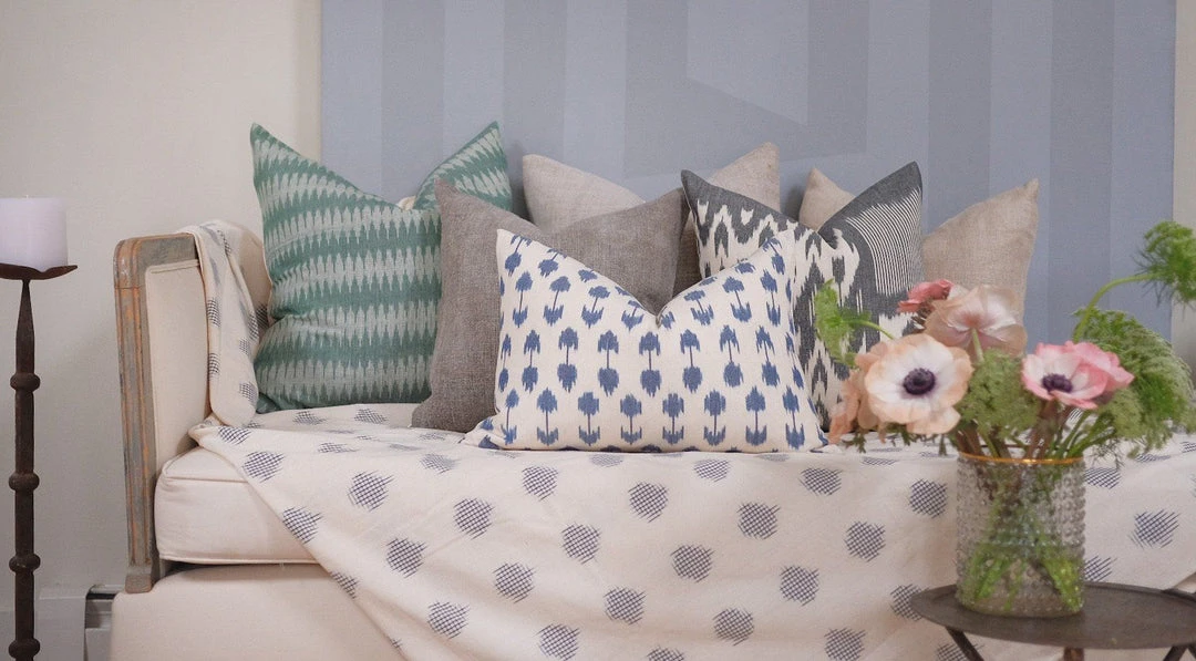 The Tulsi Throw is made with the intricate craft of handloom Ikat weaving on traditional handlooms in Southern India. This versatile textile will elevate your bedding, couch, or favorite reading chair. It can even be used as a tablecloth. Slight nuances are signature of the human hand on handcrafted textiles.