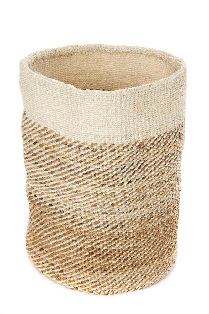This useful tall basket is hand woven from sisal and banana fiber by talented women in rural Kenya. Sisal grows well in the semi-arid climate of eastern Kenya, and its spiky leaves contain long fibers that can be extracted for weaving. Sisal baskets can be easily wet with cold water and re-shaped.