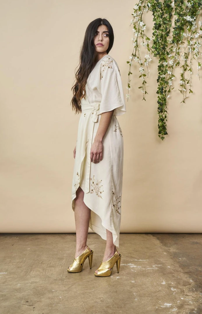 Blossoms add an ethereal touch, sure to bring lots of compliments from guests. In China, the cherry blossom symbolizes strength, beauty, and feminine sexuality–kinda all the things you’d want to embody when celebrating your special day. Symbology is deeply committed to sustainable manufacturing processes, paying livable wages to the artisans and using eco-friendly dyes.