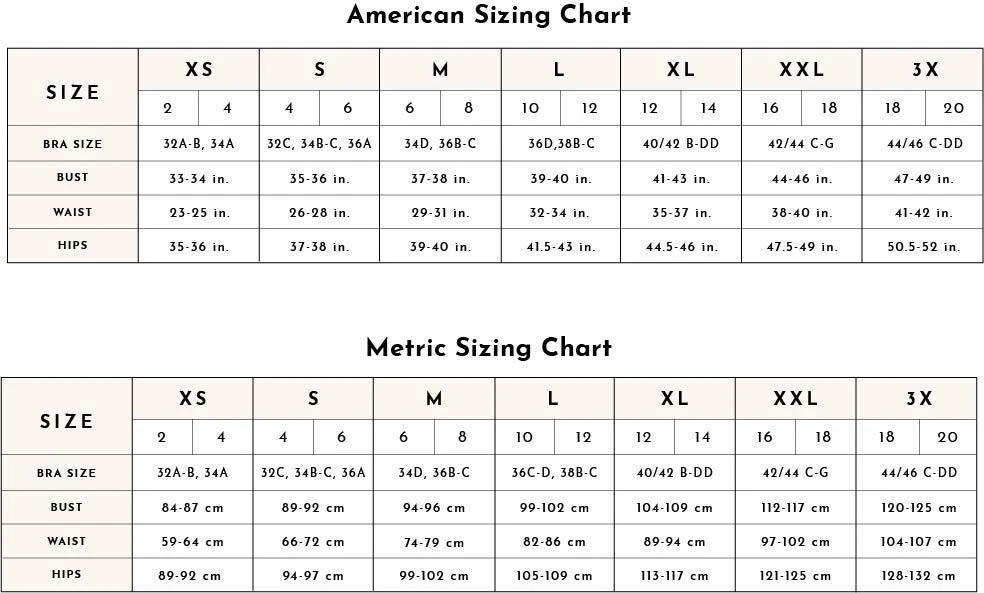 Chastity (image 1) is wearing size XL-3X and model Danica is wearing size XS-L.