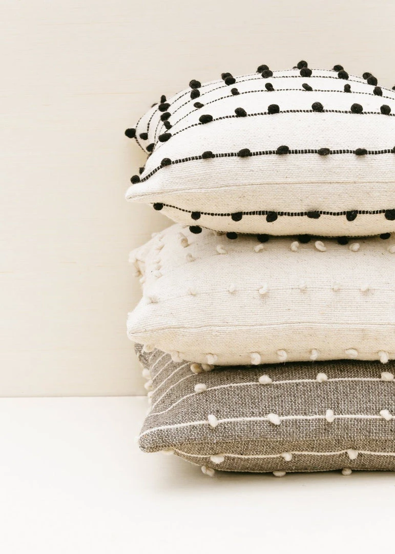 This soft, rustic, handwoven wool pillow cover was hand crafted in central Mexico. This traditional Mexican design adds a delicate, soft touch to any space. The wool is sourced locally and the dyeing and weaving is done in a family-run workshop in the Sierra Norte Mountains.