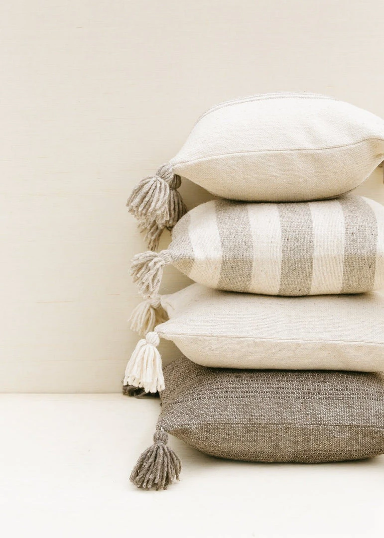 This soft, rustic, handwoven wool pillow is created in Central Mexico. The wool is sourced locally and the dying and weaving is done in the family-run workshop in the Sierra Norte Mountains.