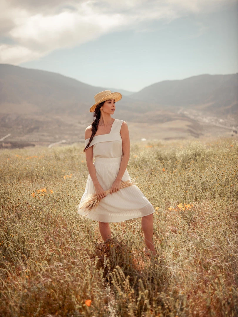 The Malina Tencel Top is a versatile, semi-fitted top with a hint of mid century flair. The luxuriously soft and silky tencel mixed with an off-the-shoulder detail and asymmetrical neckline give the Malina an elevated look that can be worn both casual and dressed up.