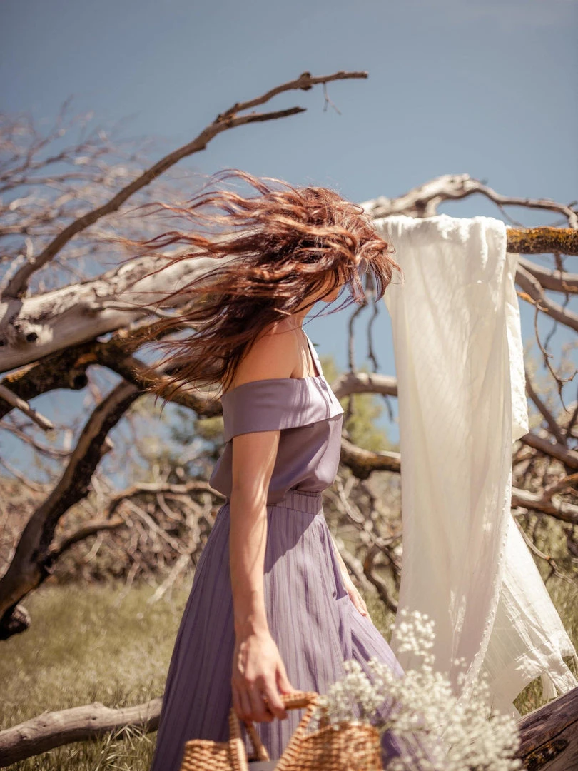 The Malina Tencel Top is a versatile, semi-fitted top with a hint of mid century flair. The luxuriously soft and silky tencel mixed with an off-the-shoulder detail and asymmetrical neckline give the Malina an elevated look that can be worn both casual and dressed up.