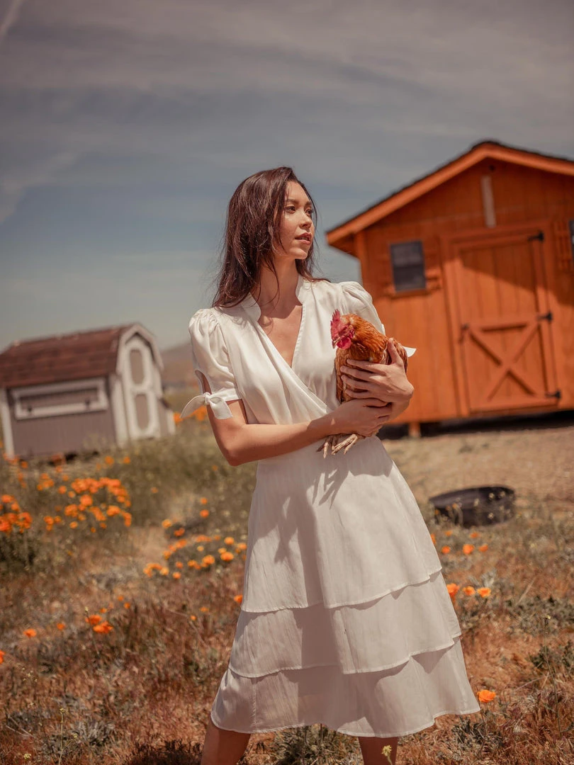 The Sitha Tencel Top will add a romantic touch to your sustainable wardrobe. With an open Mandarin collar, faux wrap, puff sleeves with a bow tie detail, and a relaxed fit, this hip length top can easily be dressed up or down. The luxuriously soft and silky tencel fabric is breathable and moisture wicking to keep you feeling as breezy and crisp as you look.