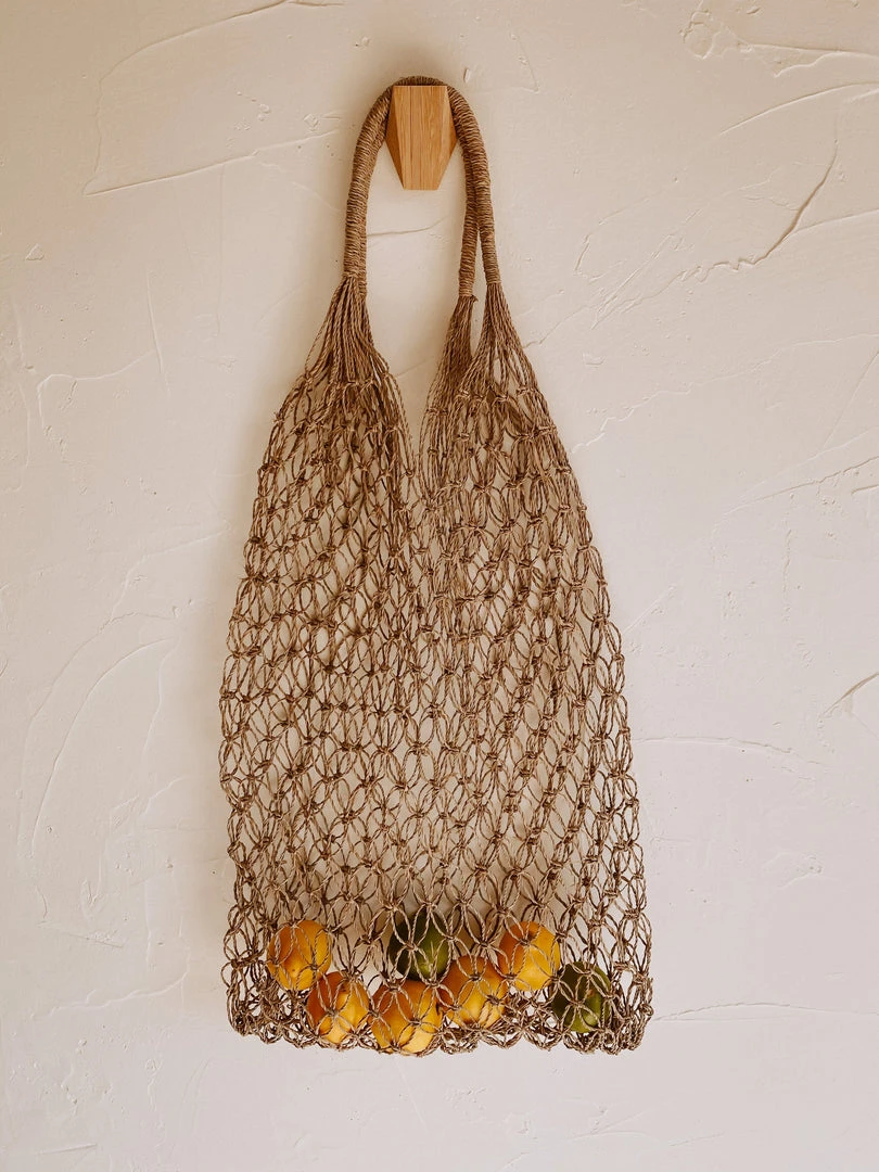 This oversized Seagrass Net Market Tote is a zero waste carry along for trips to the shops and the market. The lightweight, oversized design also makes it ideal as a beach bag, gym bag, or even an overnight bag.